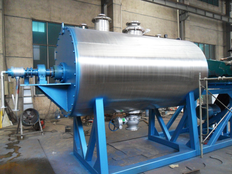 ZB系列真空耙式干燥机是一种新颖卧式间歇式真空干燥设备,湿物料经传导蒸发,带有刮板搅拌器不断清除热面上的物料,并在容器内推移形成循环流,水份蒸发后由真空泵抽出。本机采用大面积夹层加热方式,传热面大,热效率高,设置搅拌,使物料在筒内形成连续循环状态,进一步提高了物料受热的均匀度,从而可顺利进行浆状、膏状、糊状物料干燥。
